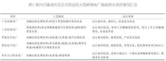 根據(jù)調(diào)研,目前國內(nèi)已實(shí)施脫硫 廢水零排放的發(fā)電廠共有23家,處理水量0.5~47t/h,其中,目前已建成并且正式投運(yùn)的大型燃煤電廠脫硫廢水項(xiàng)目情況如表1所示。
