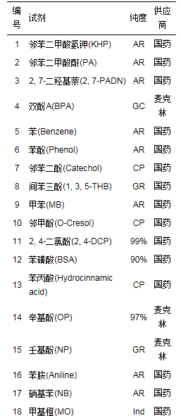目前, 超臨界水氧化法降解有機(jī)物主要是針對(duì)單一物質(zhì)進(jìn)行試驗(yàn)研究, 鮮有對(duì)多種有機(jī)物同時(shí)進(jìn)行系統(tǒng)的研究.因此, 本文選取鄰苯二甲酸氫鉀、雙酚A、辛基酚、壬基酚等20種有機(jī)物, 研究其在超臨界水氧化中的降解效果, 探究溫度和停留時(shí)間對(duì)超臨界水氧化降解的影響, 并進(jìn)行動(dòng)力學(xué)分析.同時(shí), 采用軟件Gaussian 09和Material studio 6.1對(duì)有機(jī)物進(jìn)行量子化學(xué)參數(shù)計(jì)算, 進(jìn)而分析20種有機(jī)物降解速率常數(shù)與量子化學(xué)參數(shù)之間的關(guān)系.