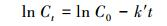 將方程(2)進(jìn)行分離變量, 積分, 則得如下一級(jí)反應(yīng)動(dòng)力學(xué)方程: