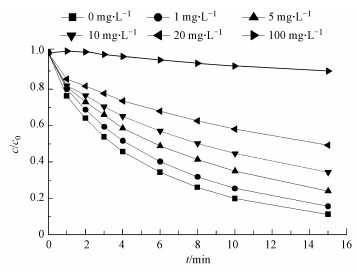 圖 5 RhB初始濃度對其在UV/PMS體系中降解的影響([PMS]=50 μmol·L-1,pH=7.19)