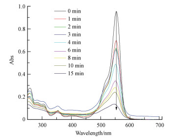脫色降解后的RhB,采用UV-1801紫外可見分光光度計(北京瑞利分析儀器公司)于其最大吸收波長554 nm處測定吸光度,通過標準曲線計算其濃度值.