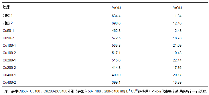 3.3 Cu2+污染對SMFCs裝置電荷傳遞電阻的影響