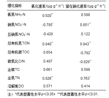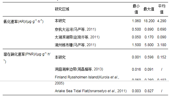 3) 滏陽河表層沉積物氨化速率受沉積物氨氮、總有機氮和全氮影響, 沉積物硝氮含量制約氨化作用的發生.表層沉積物潛在硝化速率與沉積物硝氮、總有機氮和全氮相關性密切, 與沉積物總有機碳和碳氮比顯著負相關, 沉積物本底值會直接影響氨化和硝化作用反應速率.(來源:環境科學學報 作者:王若冰)