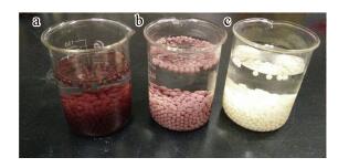 試驗(yàn)制備的CA+B、CA+B+PC、CA+PC材料的外觀見(jiàn)圖 1,合成的材料呈小球狀,直徑約為2~3 mm.