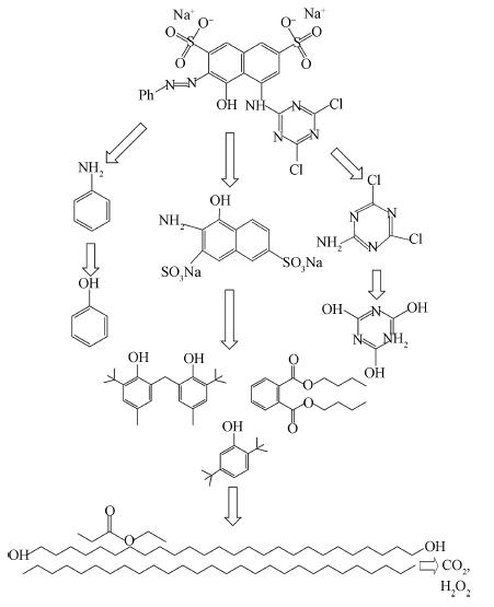 圖 10 g-C3N4/TiO2/光合細(xì)菌復(fù)合材料降解活性艷紅X-3B的路徑
