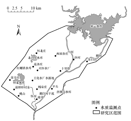 研究區(qū)位于北京市東北部, 研究范圍為北京市密云縣和懷柔區(qū)的平原區(qū)(圖 1), 面積約703 km2.研究區(qū)內(nèi)地形總的趨勢是北部狹窄、南部開闊, 地形由北向南傾斜.區(qū)內(nèi)海拔一般在50 m, 其東北、西北和北部三面環(huán)山, 南面地勢平坦.研究區(qū)多年平均降雨量為656.5 mm, 其中, 2004—2014年的年均降水量為565 mm.年內(nèi)降水主要集中在5—9月的汛期, 歷年平均汛期降水量占到年降水總量的72%~85%, 其中, 6—8月的降水量占到年總降水量的65%, 在7、8月常有暴雨出現(xiàn).