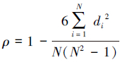 硝酸鹽常被選為評估地下水脆弱性和污染風(fēng)險的指標(biāo)(Stigter et al., 2005; Assaf et al., 2009; McLay et al., 2001), 硝酸鹽濃度與地下水污染風(fēng)險等級之間的相關(guān)性可以用Pearson相關(guān)因子(r)或Spearman等級相關(guān)因子(ρ)來表征(Lake et al., 2003; Panagopoulos et al., 2006).其中, Pearson相關(guān)因子的應(yīng)用前提是假定硝酸鹽濃度服從正態(tài)分布, 而Spearman等級相關(guān)因子不受兩變量分布形式和樣本量的約束.故本文采用Spearman等級相關(guān)因子(式(5))來驗證本研究中地下水污染風(fēng)險等級結(jié)果的有效性.