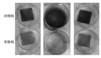 抑制劑對微生物附著特性的影響和附著基底材料表面特性密切相關, 所以本研究進一步考察了雙(3-氨基丙基)胺對微生物在不同材質基底層表面的附著影響.分別選擇具有不同親疏水性特性的聚苯乙烯(6孔板)、玻璃片和聚甲基丙烯酸甲酯3種材料為附著界面, 3種表面接觸角分別為93.4°、22.0°和81.9°.分別將20 mm× 20 mm玻璃片或聚甲基丙烯酸甲酯片置于6孔板中進行附著實驗, 每個孔板中加入6 mL污泥懸液, 再分別加入雙(3-氨基丙基)胺終濃度為0或131 mg·L-1.污泥懸液、基質濃度及操作條件和上述的附著實驗一致.培養24 h后, 將載玻片烘干, 染色并用Olympus相機進行拍照記錄.