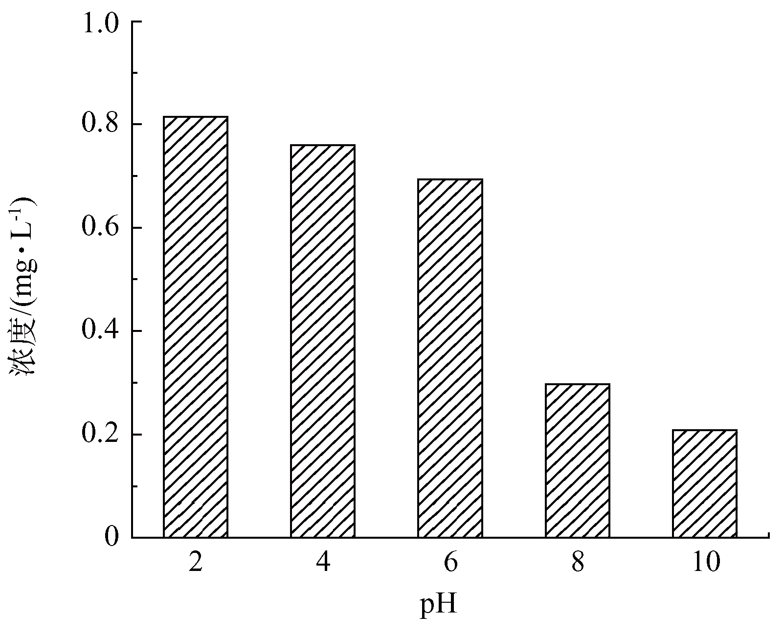 圖9 不同pH下AC-1中 Zn2+溶出量