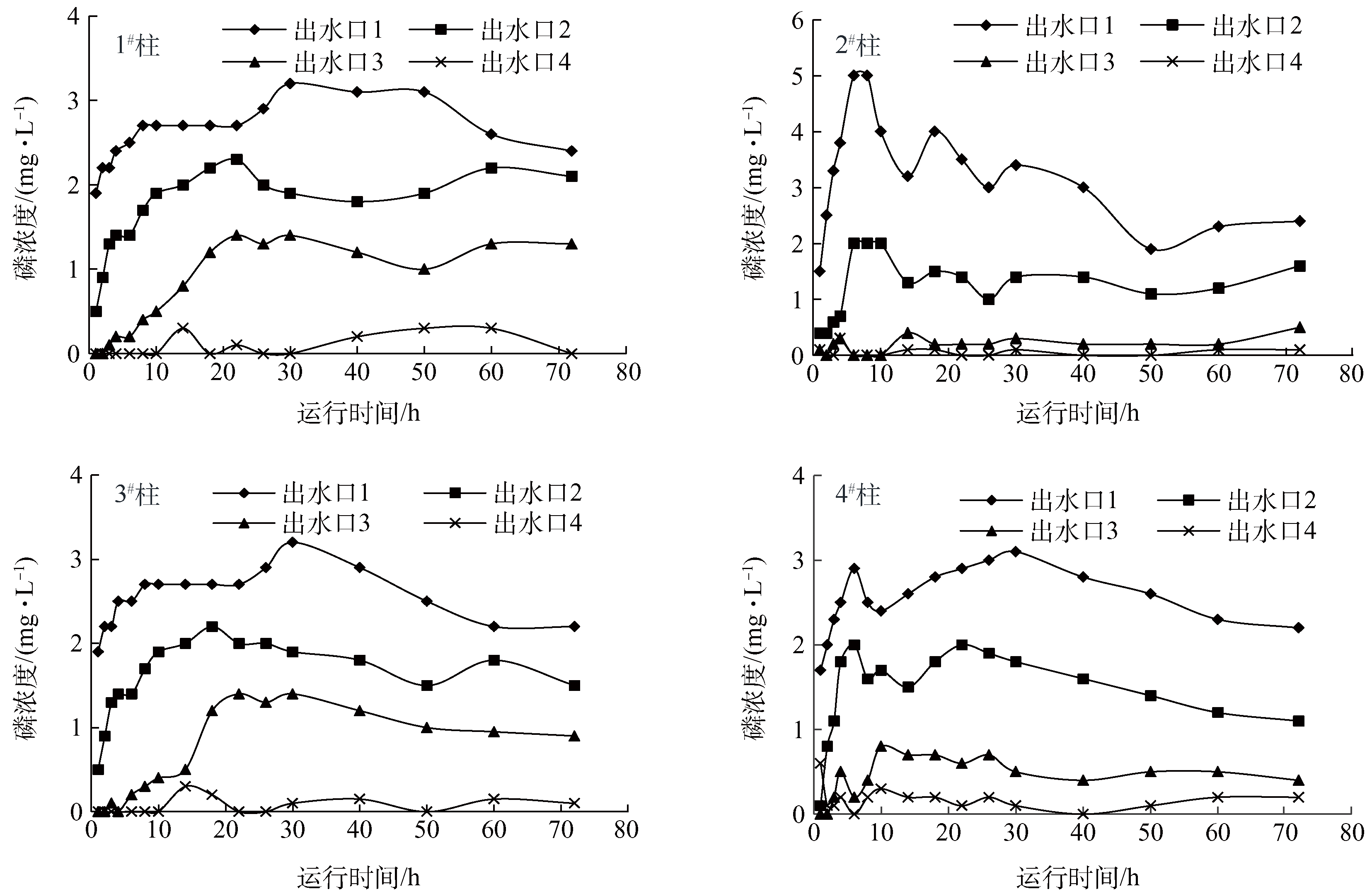 圖4 各滲濾柱不同出水口TP濃度隨時間的變化