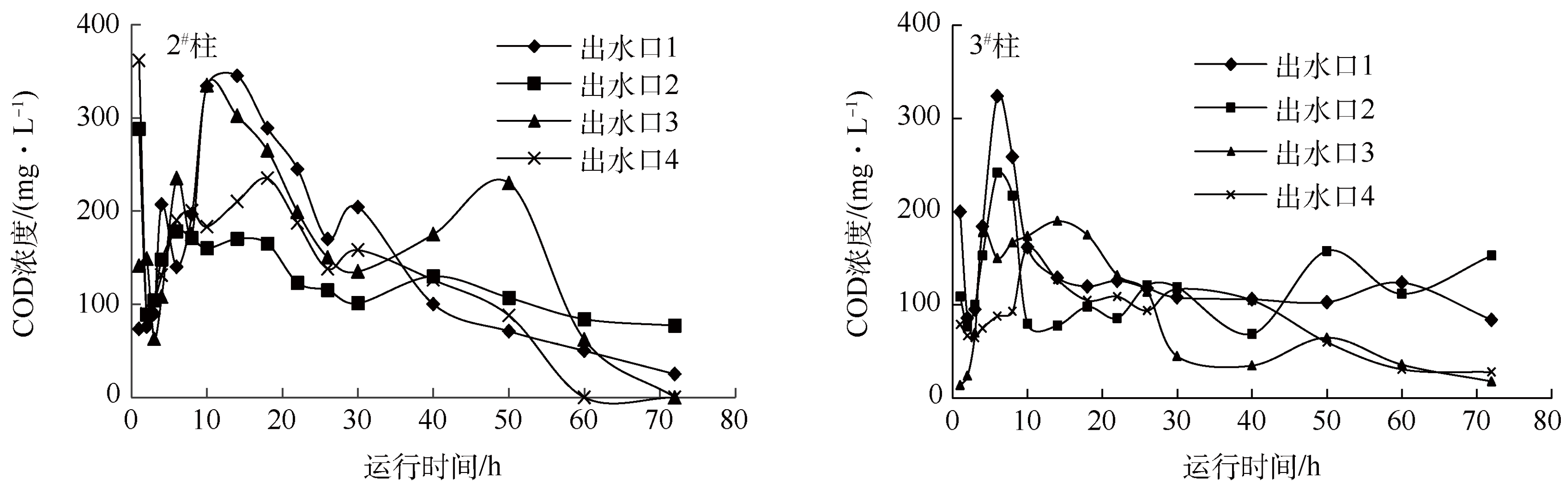 圖6 2#和3#滲濾柱各出水口COD濃度隨時間的變化