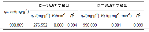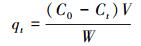 式中, C0、Ct、Ce分別為初始時刻、吸附時間為t、吸附平衡時的吸附量(mg·g-1), V為溶液體積(L), W為吸附劑的質量(g).