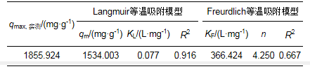 表 3 混合藻硅藻粗多糖對Pb2+吸附的Langmuir、Freundlich等溫吸附模型系數(shù)