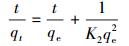 吸附t時間后, 吸附劑對Pb2+的吸附量(qt, mg·g-1)、達到吸附平衡時的吸附量(qe, mg·g-1)的計算公式如下所示: