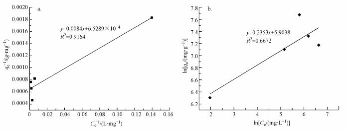 常見的吸附等溫模型為Langmuir等溫式和Freundlich等溫式, 其線性表達式分別為:
