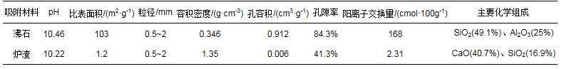 表 2 實(shí)驗(yàn)沸石和爐渣基本理化特性