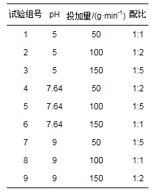 根據(jù)單因素試驗(yàn)結(jié)果, 正交試驗(yàn)在反應(yīng)時(shí)間為120 min, 200 mL初始滲濾液條件下進(jìn)行, 探究材料質(zhì)量配比(沸石:爐渣)、滲濾液初始pH(自然值為7.64)及組合材料投加量對(duì)吸附效果的影響, 因素水平設(shè)計(jì)如表 4所示.