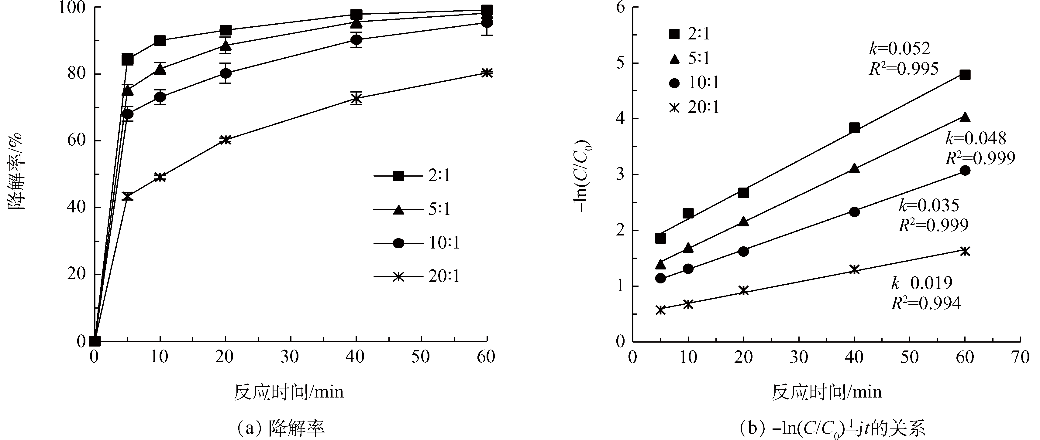 2.1.3 H2O2:Fe2+比值對Phe降解效果的影響