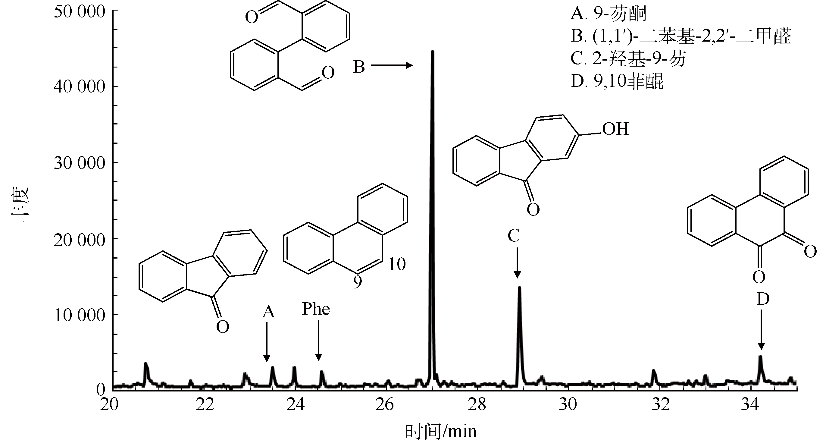 圖6 US/Fenton降解Phe的GC/MS色譜圖及中間產物