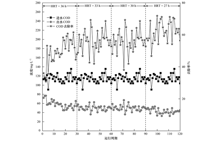 圖 5 不同HRT下ANAMMOX系統中COD變化特征圖 6