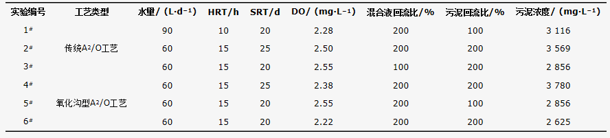 表4傳統A2/O工藝和氧化溝型A2/O工藝運行條件