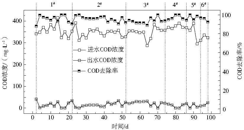 實驗監測項目包括COD、氨氮(NH4+-N)、溶解性磷酸鹽(PO43−-P)、硝酸鹽氮(NO3−-N)、亞硝酸鹽氮(NO2−-N)、溶解氧(DO)、溫度、pH、SV30、混合液懸浮固體濃度(MLSS)和揮發性懸浮固體濃度(MLVSS)?偟(TN)濃度采用氨氮、硝酸鹽氮與亞硝酸鹽氮濃度之和。各監測項目的監測均參考文獻中的方法[11],見表3。