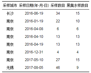 2016~2017年采集了長沙、南京和無錫的城市黑臭水體共計85個樣點, 非黑臭水體共計80個樣點.