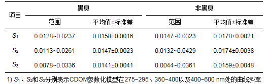 表 6 黑臭與非黑臭水體CDOM參數化模型的S值1)