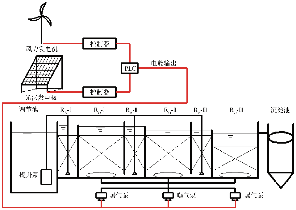 本研究構(gòu)建了利用太陽能和風(fēng)能互補(bǔ)發(fā)電,并通過自動(dòng)控制實(shí)現(xiàn)污水處理裝置自動(dòng)運(yùn)行的集成系統(tǒng)。本研究重點(diǎn)對太陽能和風(fēng)能的變化規(guī)律進(jìn)行分析,研究與之相適應(yīng)的污水處理生物反應(yīng)器的運(yùn)行方式,以期為新能源在農(nóng)村污水處理中的應(yīng)用探索有效途徑。