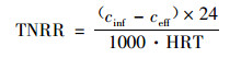 式中, HRT為水力停留時間(HRT=6 h, 采樣間隔t=0.5 h), cinf為進水總氮濃度(mg ·L-1); ceff為出水總氮濃度(mg ·L-1).