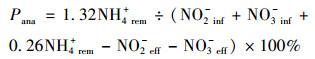 式中, 下標中ana、den、rem、inf、eff分別代表厭氧氨氧化、反硝化、去除率、進水和出水. NH4+、NO2-和NO3-的濃度以N(mg ·L-1)表示.