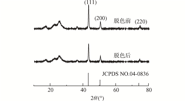 圖1 脫色前后銅膜上納米銅的XRD圖譜