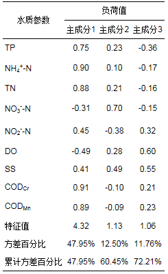 主成分分析(Principal Component Analysis,PCA)在評估和研究區域的水質時空特征中被廣泛應用(黃金良等,2012;陳永娟等,2015;邱瑀等,2017),本研究采用K-S檢驗對原始數據進行正態分布檢驗,結果表明,Skewness值與Kurtosis值分別為0.375、0.821,均小于1,數據近似于正態分布.