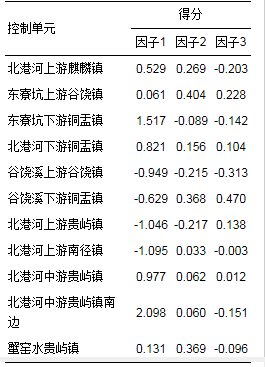 各控制單元主成分綜合得分可表征其受潛在污染因子的影響程度.由表 5可知,北港河中游貴嶼鎮南邊控制單元、東寮坑下游銅盂鎮控制單元及北港河中游貴嶼鎮控制單元受因子1的影響最大,谷東寮坑上游谷饒鎮控制單元及蟹窯水貴嶼鎮控制單元受因子2的影響較大,此外,谷饒溪下游銅盂鎮控制單元受因子3的影響也不容忽視.