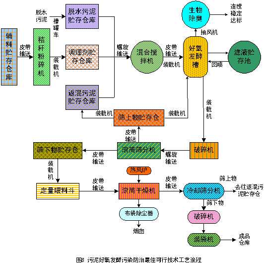一、污泥好氧發(fā)酵污染防治最佳可行技術(shù)工藝流程圖