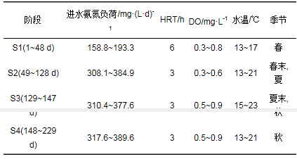 亞硝化濾料來自于高溫高氨氮運行的亞硝化濾池, 亞硝化率大于83%, 容積負荷在0.5 kg·(m3·d)-1左右.