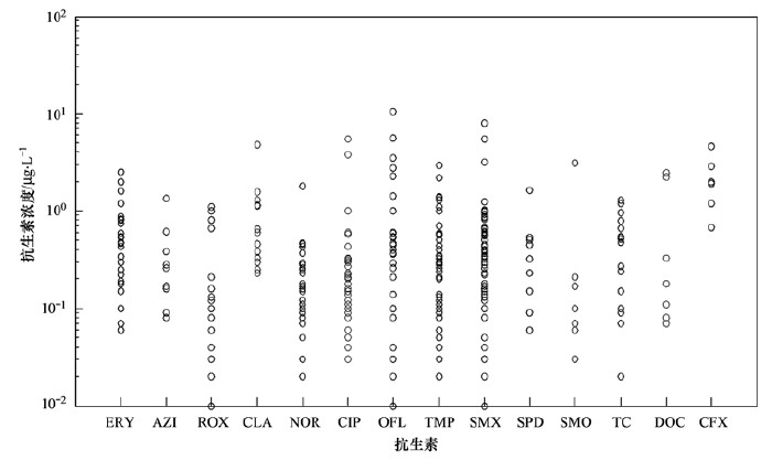 1 污水中抗生素的濃度水平