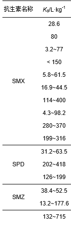 表 1 典型抗生素在污水處理廠污泥中的Kd值