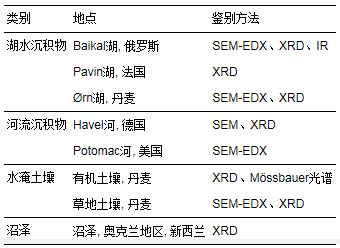 表 2 不同類型水體中發(fā)現(xiàn)的藍(lán)鐵礦以及鑒別方法(Reed et al., 2016)