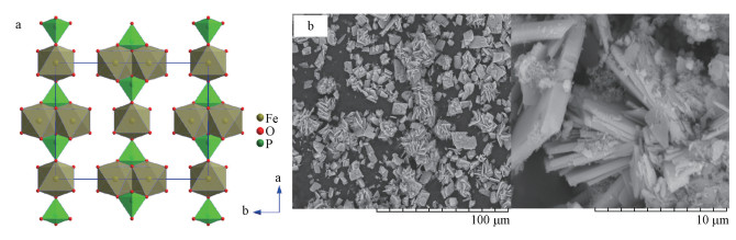 圖 1藍(lán)鐵礦晶體結(jié)構(gòu)示意圖(a)(秦善, 2011)及SEM成像(b)