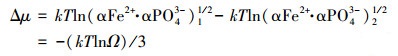 式中, k為波爾茲曼(Boltzm ann)常數(shù), T為絕對溫度, α為離子活度, Ω為過飽和度.