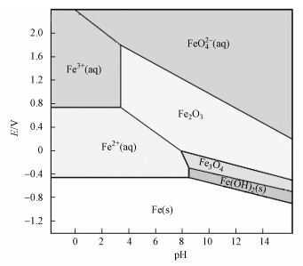 圖 4鐵元素在不同pH及ORP條件下的Pourbaix圖(Kopeliovich, 2012)