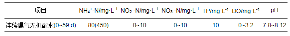 表 1 CANON反應器的無機配水階段進水水質