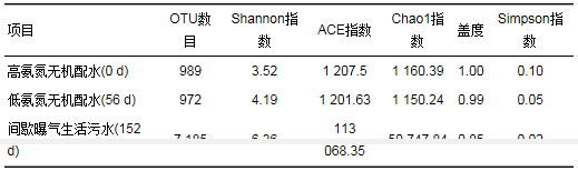 表 3 CANON生物膜污泥的多樣性指數