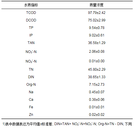表 1 試驗模擬配制的廢水組成1) /mg·L-1