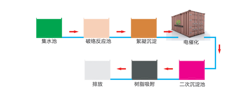 絮凝+次氯酸鈉破絡+調pH+捕捉劑+調pH+樹脂吸附