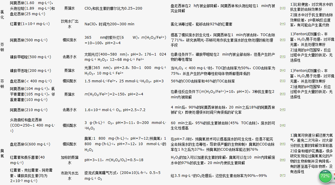 利用Fenton或者光催化Fenton處理抗生素廢水的研究也比較多,ARSLAN-ALATON等研究類Fenton降解盤尼西林,在其優化條件下(初始COD 600 mg·L-1,1.5 mmol·L-1 Fe3+,25 mmol·L-1H2O2),可獲得56%的COD去除率和46%的TOC去除率。PEREZ-MOYA等研究Fenton降解磺胺類藥物,結果表明在600 mg·L-1 H2O2, 50 mg·L-1 Fe2+條件下,氧化2 min磺胺甲嘧啶被全部去除,TOC的去除也達60%。ELMOLLA等研究光Fenton降解阿莫西林等β-內酰胺類抗生素時發現,這些抗生素在pH=5,紫外光6 W(365 nm),1.0 g·L-1 TiO2 催化條件下至少可以降解81%。具體聯系污水寶或參見http://www.bnynw.com更多相關技術文檔。