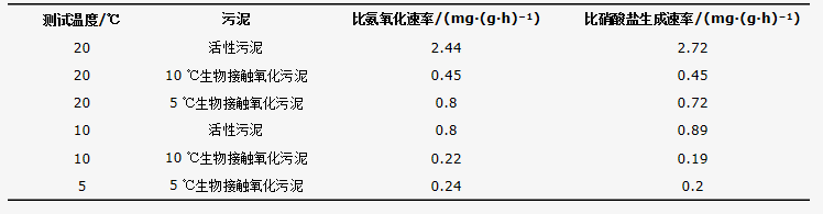 表1 生物接觸氧化污泥與活性污泥在不同溫度下的比硝化速率