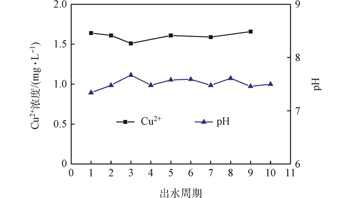 圖7 循環出水中的Cu2+及pH的變化