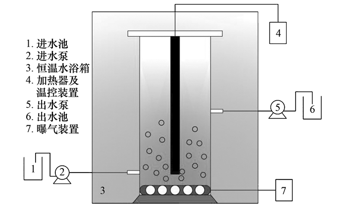 序批式反應器有效容積2 L, 水力停留時間(hydraulic retention time, HRT)為24 h.運行模式:每天運行4個周期, 每個周期6 h, 其中進水20 min、曝氣260 min、沉降60 min、出水20 min.裝置通過水浴加熱, 使水溫維持在設定溫度.